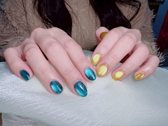 こんばんは🌛 TRANCEのなぎです❕ 最近いってたネイルサロンが合わなくてお店変えて一発目のネイル❣️ 先日ポケモンと初音ミクがコラボしたライブに行ったのですがそれを引きずっている🤣🤣🤣 マグネットネイルにしたら黄色って結構派手だなぁ笑 今度のネイルサロンの人は結構信頼できそう🥹🫶 可愛いネイルよ長持ちしてくれ〜‼️