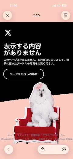こんにちは✨ TRANCEのなぎです❕ 先日Xで検索したらなんかのバグで出てこなくてこんな画面が【】[🔍] え、なにこれ🤣 初めて見た笑 かわいいプードルで癒されました(* ´ ` *)ᐝ