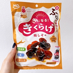 はぁい👋🏻 えまだよ💙 たまにインスタの広告?かなんかでみて ずっと気になってたのを見つけました👀 きくらげのおやつ! あれぽい 茎わかめ的な感じ 梅しそ味がほんのりで おいしいけど 1回で1袋食べちゃいそ🤣 えま💙