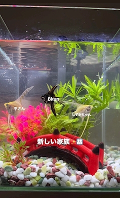 こんにちは! うい😉です 実は愛犬と お魚🐟ちゃん 去年に 新しい家族になりました😊 今はこれの3倍くらいおっきくなってて 毎回水換えの掃除する度 ビビりながら 網で移動させてる😂笑笑笑 写真は買った当初のやつ✨ また成長したらあげよかな🐣🐥🐤🐔