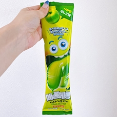 はぁい👋🏻 えまだよ💙 セブンイレブンで見つけました😎 中国産🇨🇳 めちゃくちゃ緑😂 これ時間経って溶けてきたら ぐにゃんぐにゃんになるらしいんだけど まあそうなる前に食べ終わっちゃったよねー🤣 味は普通にりんご味でおいしかった🍎 ちょっと後日ぐにゃんぐにゃん試すわ👍🏻笑 えま💙