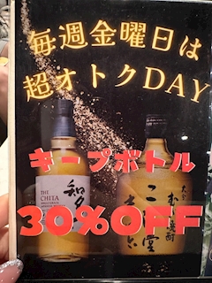 おつかれん🥭 金曜日といえば! キープボトル30% オフの日だよ🩵✨ ぜひ活用してね🥺 それでは華金楽しみましょう🎵 そうじゃない方は 互いに頑張りましょう‼️