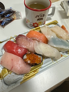 こんばんは🌛 TRANCEのなぎです🔥 先日きまぐれクックの動画を見ていたのですが、めっちゃ美味しそうな海鮮料理ばっかり出てきてその日の晩御飯はグラコロ食べよう‼️とか思ってたのに気分は海鮮に……… 思い立ってスーパーへ向かって値切り品をゲット✊💖 値切りシールを貼るおじ様の後ろをRPGのパーティメンバーのようについて歩きました笑笑 ゲットしたお寿司✊💖 一緒にマグロの刺身を買ったのでそれはマグロ丼にして、カツオの切り身は刺身と焼いて食べよう〜❣️ なかなかお魚食べる機会がないからたまにこうやって食べるのめちゃくちゃ美味しい(*´~`*)ŧ‹"ŧ‹"ŧ‹" 皆さんはなんのお魚が好きですか? 私はマグロとカツオ💓