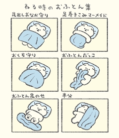 こんばんは! ゆめです🐰🌷 昨日もご来店いただき ありがとうございました✨ 唐突ですが みなさんは寝る時 どのおふとんですか?🫢?わたしはおなか守り💡 冬は首まであたためたいから おくち守りです🤫 えっと、、、、 半分のひとはいるかな? 🤭 そして起きた時は??私は最近はらまきタイプ🤭 これたぶんブランケットとか 薄手素材の場合だと思うけど 暑いときはケリケリだぁ🤣 みなさんはあてはまるタイプ ありましたか〜?😝 このイラスト可愛いね🩵 本日も出勤です💫 お得なイベント2日目! ご来店お待ちしてます🥰 いつもいいねやスーパーいいね ありがとうございます🥰
