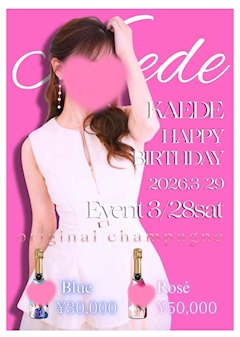 本日、かえでちゃんのバースデー🎉イベント❤️ 一緒にお祝い🥂したい!!!いつもありがとう😊かえちゃん❤️ おめでとう🎂 21:00出勤❣️