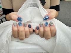 今日から月曜日! また1週間始まりましたね✨️ 一緒に頑張りましょう💪 いつもスーパーいいね、いいね、ありがとうございます😊 またお返し行きます‼️ 今回のおやすみ中にネイル変えてきました💅 秋ネイルもいいなぁと思ったけど、色味とデザインが気に入ってブルー系にしちゃった😚🫶 これも秋ネイルで探して出てきたんだけどね???? 明日からset料金ポッキリ6000円イベントdayです💓💓💓💓 めーーーーーーーーーーーーっちゃお得な3日間なので予定のないなぎに会いに来てね🥰🥰🥰🥰 ネイルも見に来て💅 お待ちしてます🌟