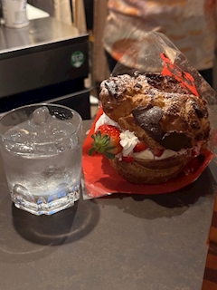お疲れ様です!! 準備中!! そーいえば昨日は早く上がったので飲みに行きました🍻色々ありやけ酒です^_^と言いつつ二日酔いにはなれないのでしっぽり朝の四時まで飲んでました👍 でっかいシュークリーム🍓一個1500円シュークリーム 誕生日付近に毎年いただくんですけどデカすぎて1人では食べきれないのでバーの方と3人で一個食べ切りました🤣 帰りは松屋で牛丼食べてからお家に帰りました🏠 カロリー爆弾💣 今日もたくさん飲めますように! お待ちしてます🐬 えな
