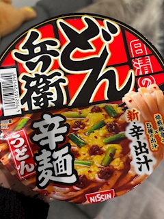おつかれん🥭 最近きつねのどん兵衛に ハマってるっちゃけど この前ずっと食べようか迷ってた 辛麺のやつ買って食べてみた❣️ リラックマの足写ってるw あたしはやっぱ きつねが好きだった🦊 辛麺はやっぱラーメンが良いのか どん兵衛はやっぱきつねがいいのか ってことで出勤します❣️ まっちょるよ♡
