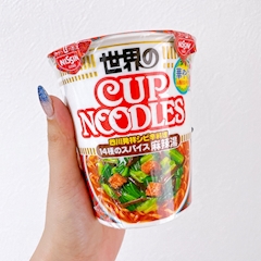 はぁい👋🏻 えまだよ💙 4/6から販売って聞いてたんだけど セブンとファミマ2件ずつ回っても置いてなくて なんでないの!?ってなってたところ 一昨日くらいにふとローソンに立ち寄ったら ありましたーーーー🤩 カップヌードルの麻辣湯😍 まあ辛さも痺れも足りないけども おいしかった😋 ただ辣油と花椒とぶどう山椒しっかり追加させて頂いた😌 えま💙