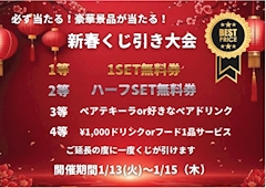 こんばんは! ゆめです🐰🌷 先週もご来店いただき ありがとうございました✨ 今日から!! お得なイベントです🤗🧧🪅 ご延長ごとにくじ引きチャンス✨ ハズレ無し٩(ˊᗜˋ*)و 新年の運だめし当てちゃいましょ🧡 今週は土曜日いません🥺 13(火)14(水)15(木)16(金)出勤予定です! お時間あれば会いにきてね❣️ 今日もたのしく飲みたいなぁ ご来店お待ちしてます🥰🌈 いつもいいねやスーパーいいね ありがとうございます🥰