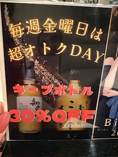 今日はお得な金曜日🉐 ボトル30%オフなので ぜひお得に飲みましょ❣️ そら