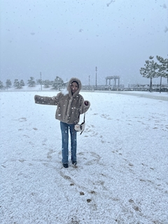 おつかれん🥭 広島旅行した時 雪すんごい降ってた〜 写真のために一瞬だけ傘無しででた笑 こんな降るとは思わんかったからびっくり 🫢