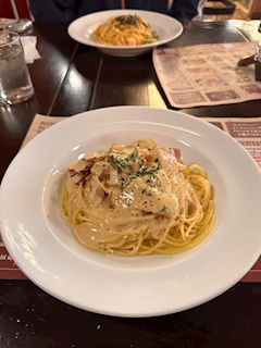 おはよ〜🌞 実家に帰ると結構外食行くんですお兄ちゃんが帰省してる時は特に このパンが食べ放題でバターも美味しくてパスタというかパンを目当てに行ってます!パスタももちろん美味しいです😋🤤 港区にあるオールドファクトリーっていうお店!店内に電車があって季節ごとに飾り付けもすごくて小さい頃からよく行きます❣️ みなさんもどこか美味しいご飯屋さんないですかー!教えてください😊 21時出勤です❣️ お待ちしてます🐬 えな