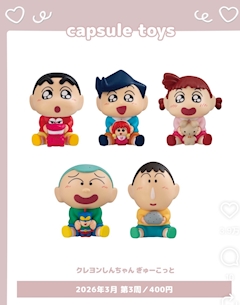 出勤しました!! なこです🎀 さっきインスタ見てたら めちゃ可愛いの出てきたの!! クレヨンしんちゃんのガチャ! しんちゃんとワニ山のセットは安定にいいけど、風間くんもえPはえぐい! ボーちゃんの石も可愛すぎ! ガチャガチャ見つけたら教えてください💖 よーし今日もがんばります!!! 楽しむぞお! なこ🐤