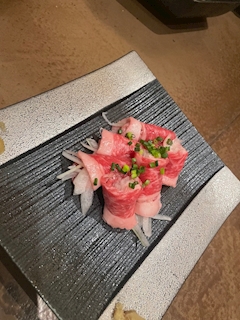 おはにょーん☀️ ご飯からご一緒した時の🤗 一枚目の写真はコウネってお肉!初めて食べた!牛肉の肩バラ肉らしい!生で食べるんやけど生肉大好き人間には最高でした😆 2枚目の写真はタンとシャトーブリアン🥩一瞬で溶けた🫠🫠笑 幸せすぎた🫠🫠 最後の写真はメレンゲ卵かけご飯🥚ふわふわで新食感だった🤭🤭 前載せた美味しいワイン🍷はこのお店で出会いました❤️ 美味しいお肉と美味しいワインのコラボは最高すぎ😆 素敵なお店に連れてってくれてありがとう❤️ ではまた夜ブログ更新しまする!
